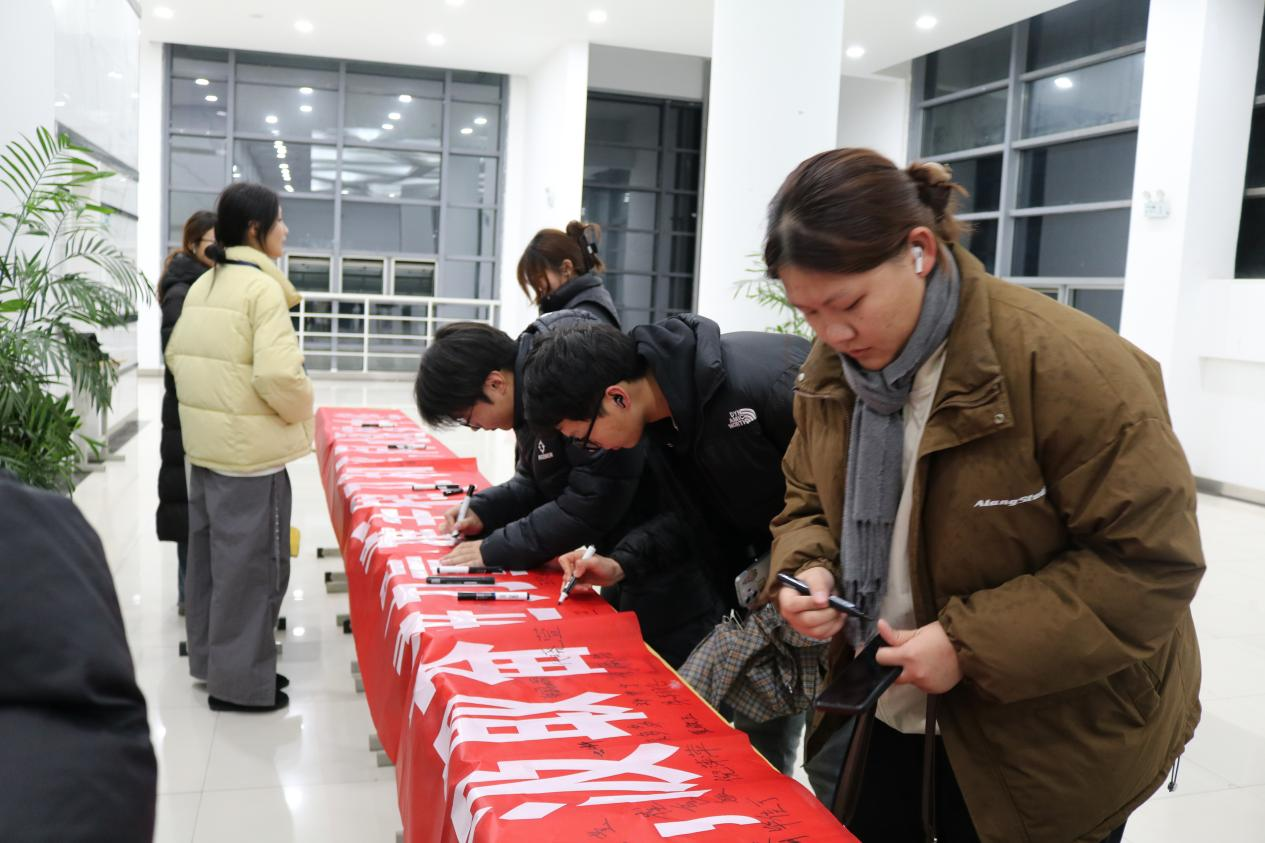 活动现场氛围庄严肃穆。观影前,同学们有序驻足于“铭记苦难历史,汲取奋进力量;携手捍卫和平,同心圆梦中华”的条幅前,郑重落笔签下自己的姓名。笔尖划过条幅的瞬间,既是对先烈英灵的追思与告慰,更是新时代青年“强国有我”的铿锵誓言。随着灯光渐暗,电影《南京照相馆》的画面缓缓铺展。同学们自觉敛声静气,跟随主人公的视角穿越至山河破碎的金陵城,见证了风雨飘摇年代里,中华儿女在民族危亡之际挺身而出的不屈风骨——有平凡个体的抗争微光,有仁人志士的舍生取义,更有整个民族在绝境中坚守的家国大义。观影过程中,现场寂静无声,唯有银幕光影流转,先烈们的赤诚情怀与牺牲精神深深叩击着每一位学子的心灵,不少同学热泪盈眶,用沉默与泪光传递着对历史的铭记、对英雄的崇敬。