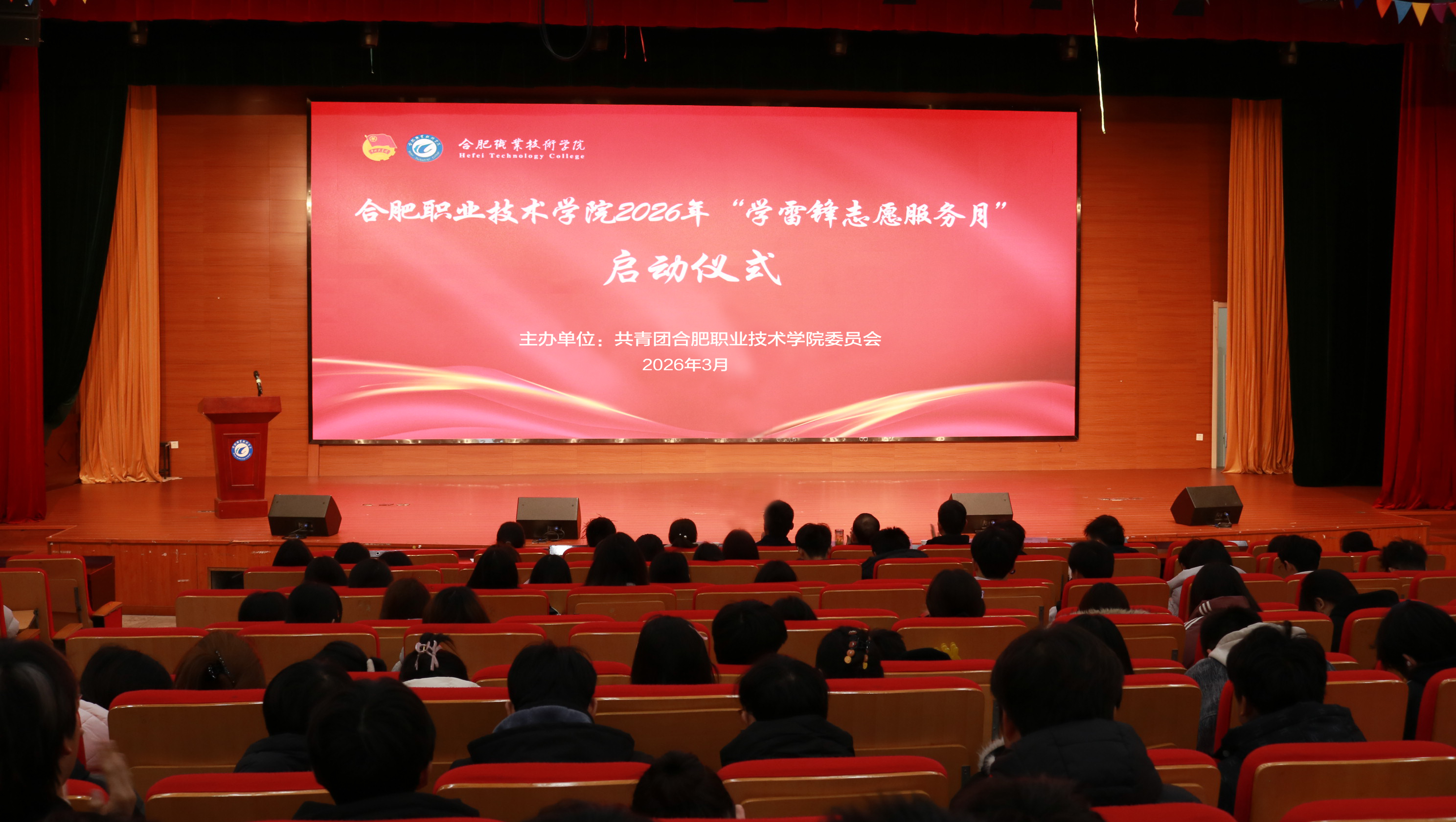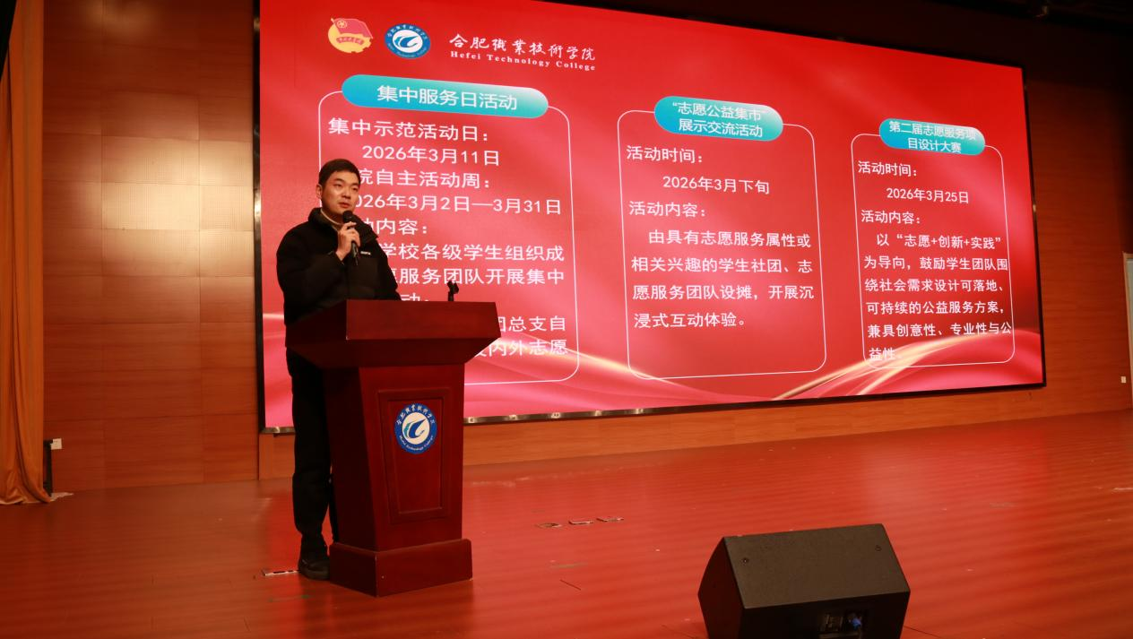 春风送暖,万象更新。在第63个“学雷锋纪念日”来临之际,为深入学习贯彻雷锋精神,引导广大青年学子以实际行动践行志愿服务理念,3月4日下午,合肥职业技术学院2026年“学雷锋志愿服务月”启动仪式在鼓山校区成功举行。鼓山校区管委会主任谭连生、学生处处长王克勇、团委书记汪洋,相关二级学院团总支负责人和青年志愿者代表共400余人参加活动。