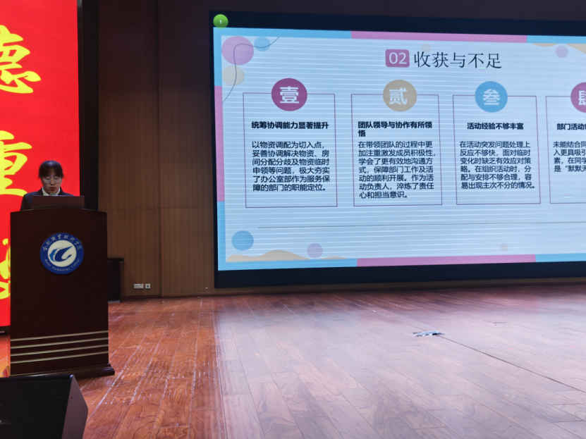 述职大会上,校院两级学生会主席团成员、各部门负责人依次登台,围绕思想引领、组织建设、校园文化、志愿服务、权益维护、社会实践等核心工作展开述职。大家通过PPT展示、数据佐证、案例分享等形式,全面复盘学期工作亮点。
